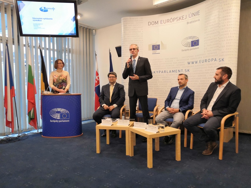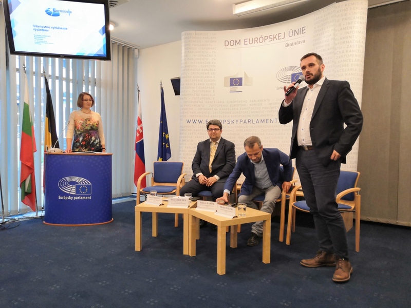 Slávnostného vyhlasovania výsledkov sa v Bratislave zúčastnili europoslanci Ivan Štefanec, Róbert Hajšel a Michal Wiezik. Podľa slov Dionýza Hochela, povereného riadením Kancelárie európskeho parlamentu na Slovensku sa do projektu zapojilo v tomto roku celkom 21 škôl z celého Slovenska. Dominovali východniari, lebo až 8 škôl bol z Prešovského samosprávneho kraja. Najviac ohýbanou témou bola téma klimatických zmien a zamyslenie sa mladých ľudí nad tým, čo môže urobiť európska únia pre nich, ale aj čo môžu mladí dať európskej únii. K najlepšej jedenástke škôl sa prihovorili aj europoslanci Róbert Hajšel, Michal Wiezik a Ivan Štefanec. Boli nadšení prístupom študentov k tejto súťaži, vyzdvihli ich mimoriadnu kreativitu a kvalitu podaných projektov. No a podľa slov členky poroty a hlavnej organizátorky Márie Kavulákovej, práve náš projekt „bol odsúdený na úspech“. Naozaj bol perfektný a to hlavne vďaka nášmu tímu Euroškolákov z II.AG a koordinátorovi Ing.Jozefovi Vargovi, ktorý mal premiéru a hneď takú úspešnú. Našu školu zastupovali pri vyhlasovaní výsledkov Eugénia Ficková, Klára Halasová, Tomáš Vida a Daniel Makranský spolu s Ing.Jozefom Vargom a Ing. Bernardínou Jedinákovou. Ako víťazný tím sme prezentovali aktivity nášho projektu a verte, podľa slov jedného z europoslancov, to bol vysoký level a víťazstvo sme si veľmi zaslúžili.
