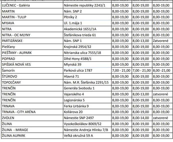- od 14.3.2020 majú predajne v nákupných centrách dočasne zmenené otváracie hodiny