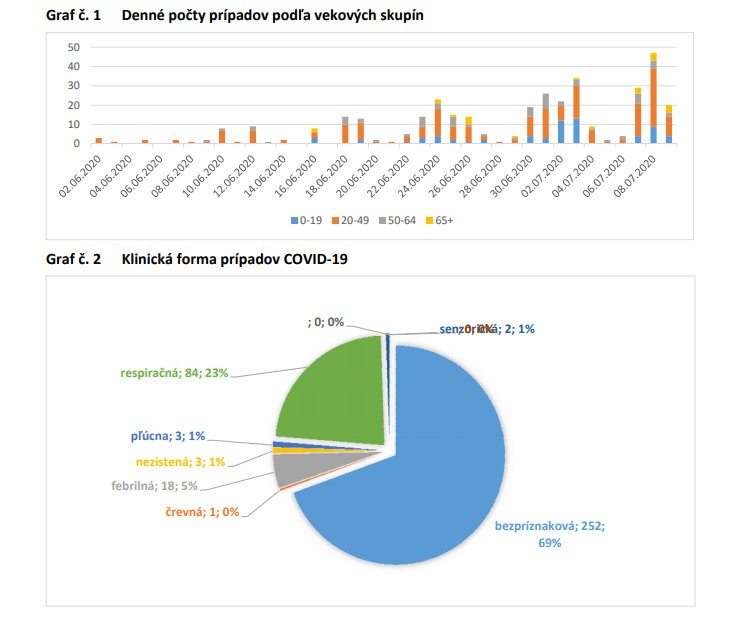 Z grafu vyplýva, že najvyšší výskyt chorých zaznamenali 8.júla, konkrétnejšie osoby vo veku od 20-49.
