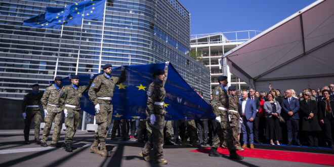 Predseda Európskej rady António Costa poďakoval veteránom za ich „obetu a oddanosť mieru“ a vyjadril poľutovanie nad tým, že v súčasnosti po začatí invázie na Ukrajinu „nemôžeme oslavovať mier v mieri“. Zároveň povzbudil členské štáty EÚ a ich partnerov, aby zostali jednotní „tvárou v tvár ruskému agresorovi“. Podľa jeho slov ide o najlepší spôsob, ako vzdať hold tým, ktorí pred 80 rokmi položili svoje životy pri obrane slobody. „Mier je dedičstvo, ale aj zodpovednosť,“ dodal. Ceremóniu sprevádzala európska hymna.