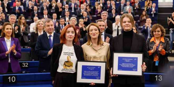 Predsedníčka Parlamentu Roberta Metsola odovzdala v utorok v Štrasburgu Sacharovovu cenu 2025 zástupcom dvoch novinárov väznených v Bielorusku a Gruzínsku.